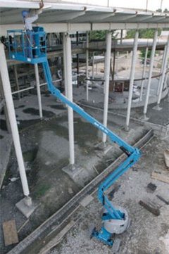 Коленчатый подъемник лучше всего подходит для использования на открытом воздухе или внутри производственных помещений в труднодоступных участках, расположенных на значительной высоте. Подойдет для обслуживания зданий, электромонтажа, монтажа и других видов работ.